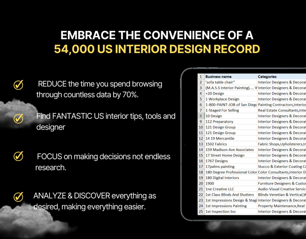 Get CAREFULLY PACKED Dataset of US Interior Designers with over 54.000 records & REVAMP your space.